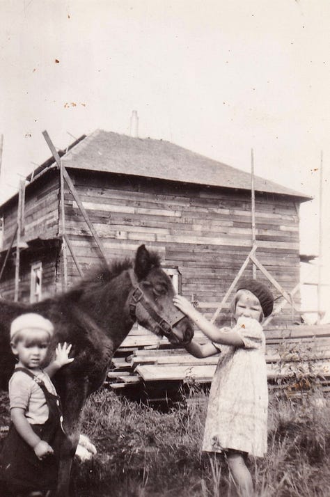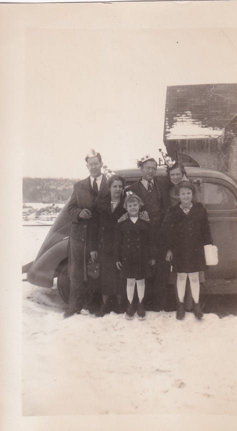 In the post Christmas clean-up, I tackled the trunk we use as a coffee table in the loft room that is Robbie's "office". I thought it was full of home movie reels and 35 mm slides on carousels—and, yes, there were those, but there were also a couple of shoe boxes crammed with photos and letters and a crate of photo albums from my grandmother Marie-Rose. A wave of despair came over me. I thought I had found and scanned ALL of the old photos already!