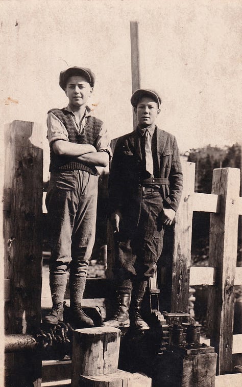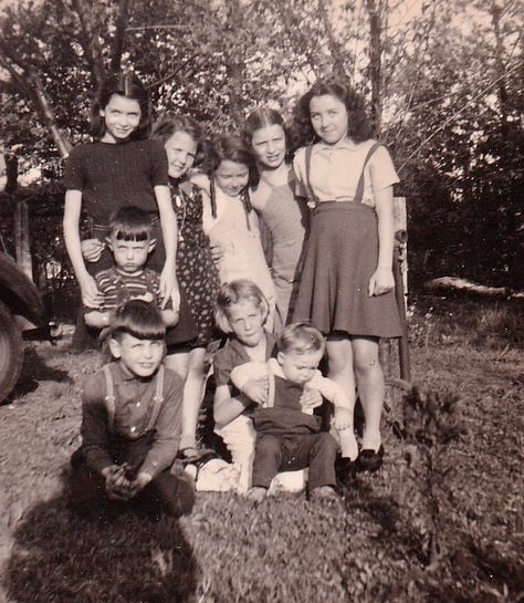 In the rambling farmhouse of one of my aunts or uncles, my sister and I would be put to bed in the room just above the kitchen, the warmest bedroom. Set in the floor there was usually a grill that allowed the heat from the kitchen to rise, a natural "central" heating. I remember lying down near the grill to listen to the grownups' conversation. My "baby French" didn't get me far—their Québecois French was so fast and truncated—but I would sometimes get the gist of bits and pieces—especially if I heard a name I knew. I remember there was a lot of laughing. My Pépère, Odias, and his brothers-in-law were great ones for earthy jokes.