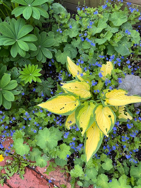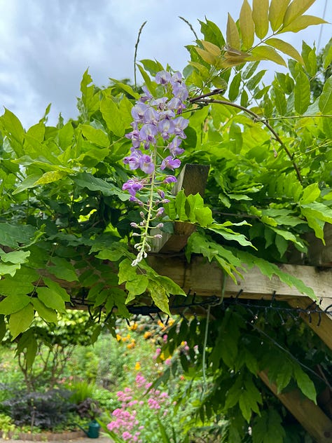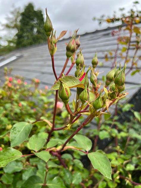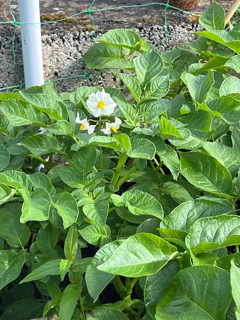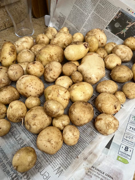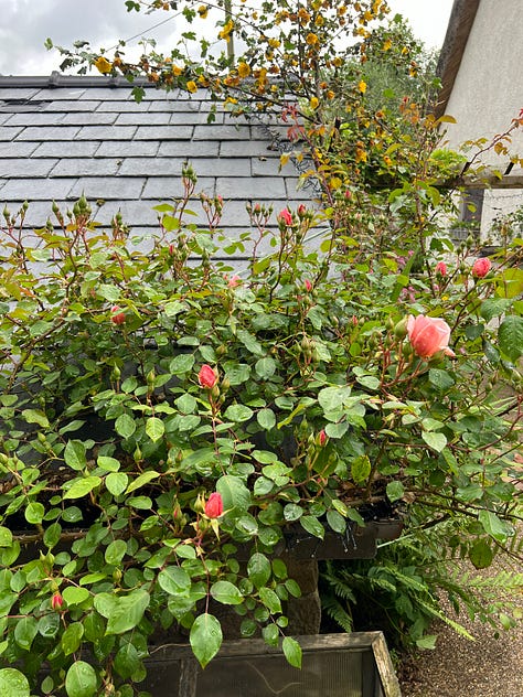 Back to less contentious matters. Below are photos I took throughout May (and maybe into June…). Now that we are a week into June, things are looking much better. The roses on the corner of the shed have never been so abundant, the potatoes we planted in the beds outside the studio have really come on—we scrabbled around for some early potatoes and, while they weren’t very big, they were very tasty.