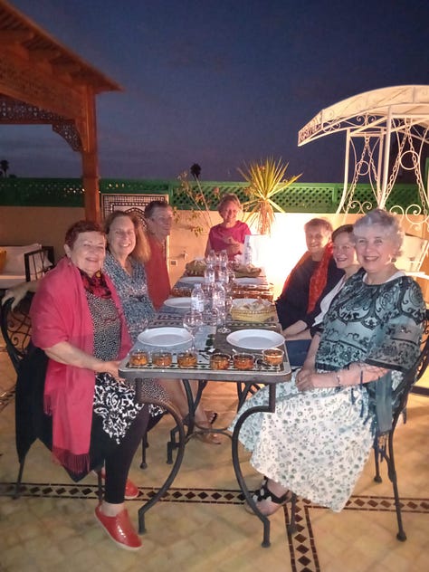 This was my year of travel! I went to the States for a month—probably a week or two too long but I had a lot to catch up on. I enjoyed the whole thing but was glad to get home—my new home. It made me realize that you can’t really go back to any part of your life. The more time that has passed, the more difficult it is to fit back in to where you left off. But, with true friends, one can always get together in the now and feel as if no time has passed at all. That’s certainly how it was meeting Catherine BS in Morocco in November for her birthday week In Marrakech. We’ve known each other nearly 50 years and only see each other every now and again. And yet, it seems as if no time passes in between our visits with each other. She’s a little younger than me but I can’t help feeling that she’s my older sister—must have been so in a previous life time. I will not likely go to Morocco again but I’m glad I went. Even if I was sick as a dog for over a week at the end.