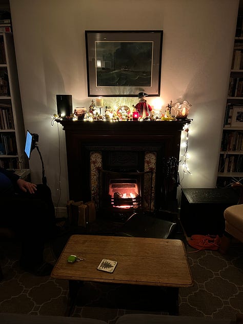There are plenty of Pratchett books left and a few books on paper that I’m saving for Christmas week and the New Year. I’ve realized that I have gone back in time in a way—to a time when Robbie and I were first together and we spent our time reading and cooking and being together. Only now we have a fireplace to sit by on these cold winter nights.
